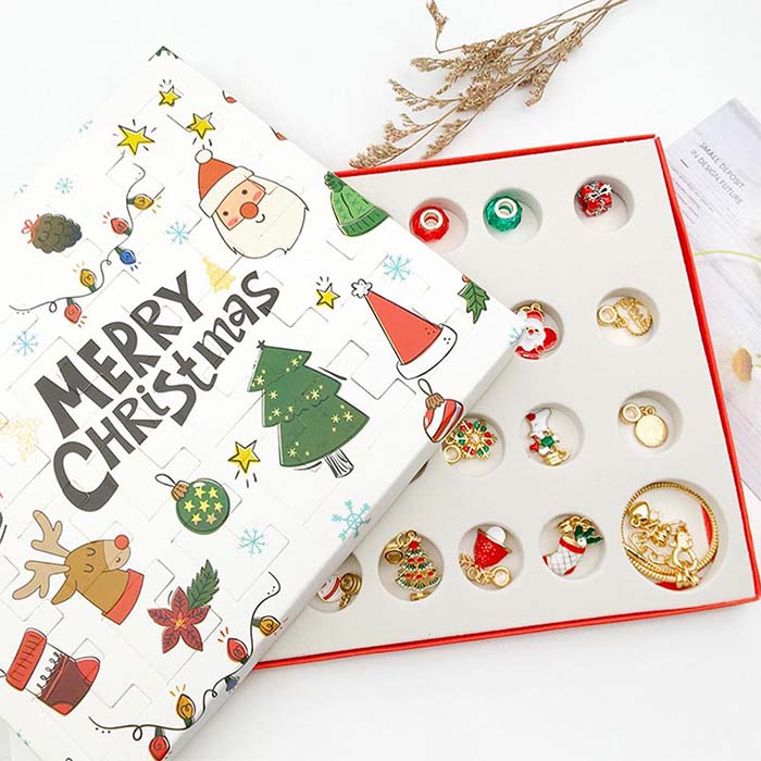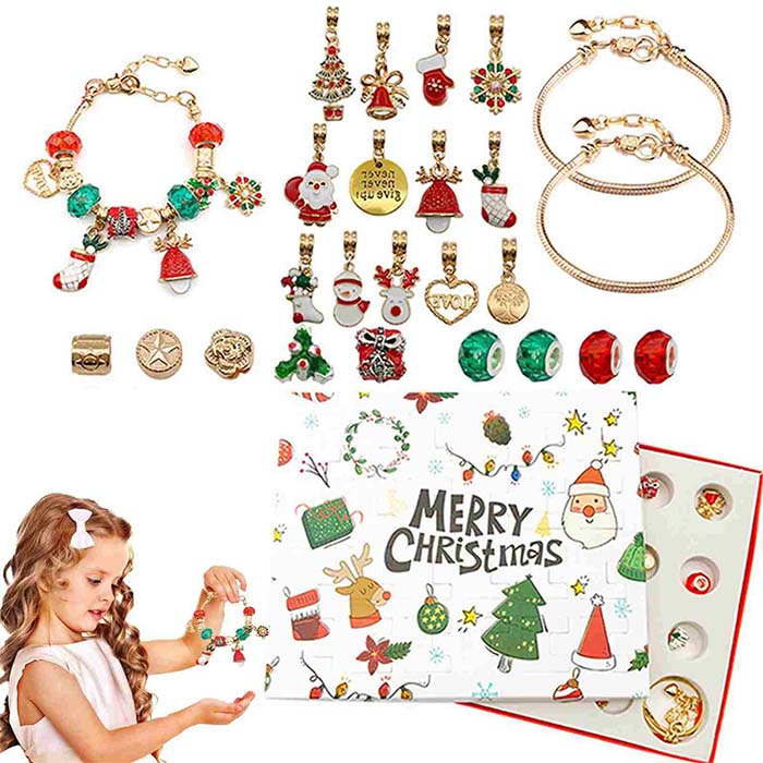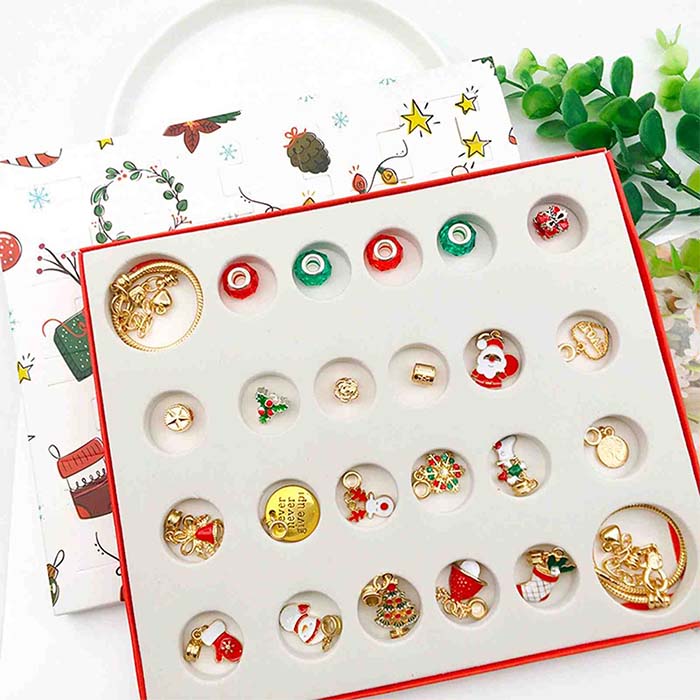 | La confezione contiene: | 1x calendario dell'avvento con 2 braccialetti e 22 pendenti con motivi festivi |