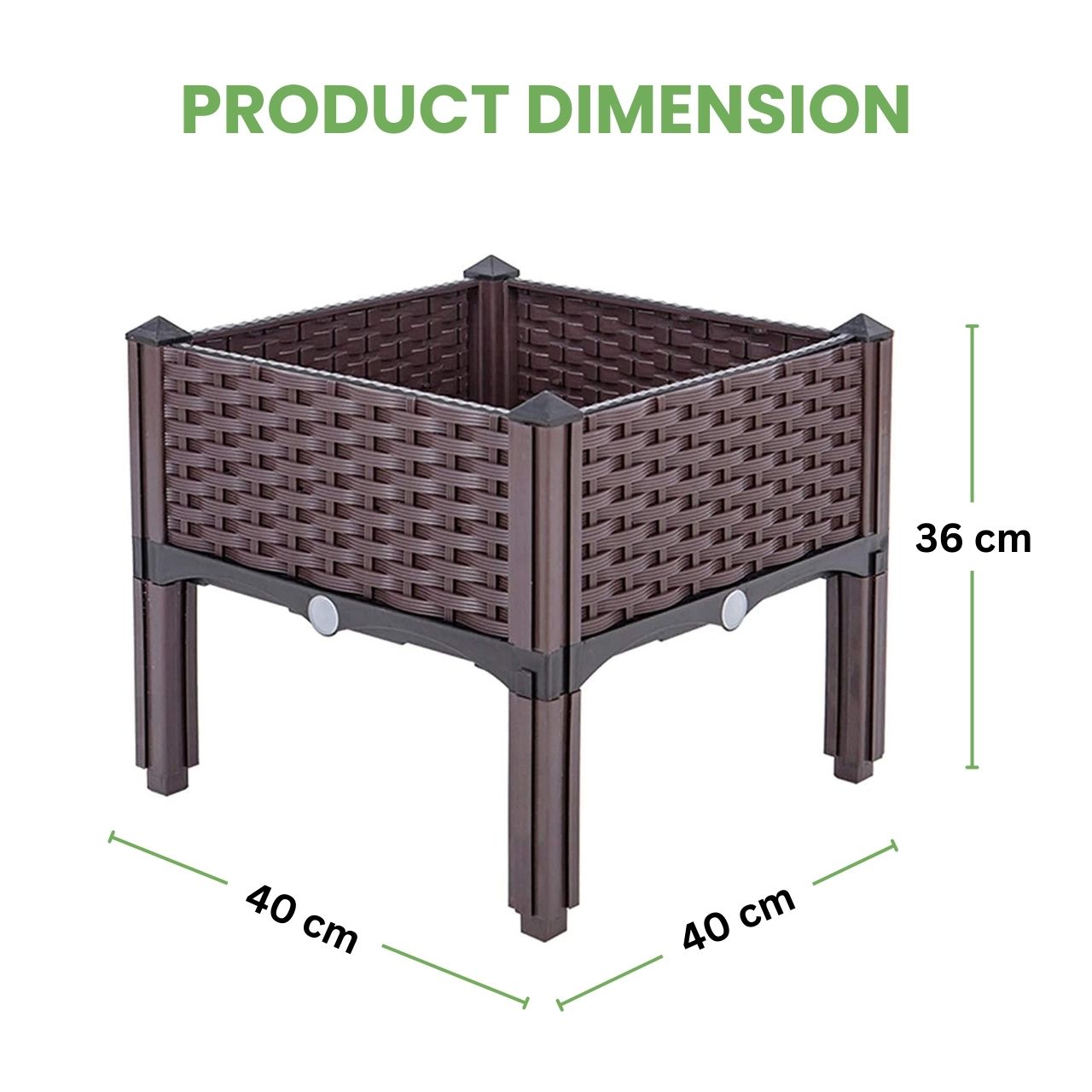 La vasca รจ rialzata da terra, il che permette un miglior drenaggio e riduce il rischio di ristagno d'umiditร e marciume radicale. Questo design offre anche una protezione aggiuntiva contro i parassiti comuni come topi e lumache.