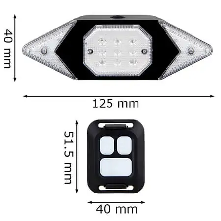 | Il pacchetto contiene: | 1x indicatore di direzione, 1x telecomando, 1x cavo di ricarica USB, 2x ausilio per l'installazione |