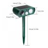 Il repellente a energia solare per animali ha celle solari, quindi può essere caricato utilizzando l'energia solare. Posiziona il repellente dove vuoi. Copri un'area di 6 - 8 metri. Quando posizioni il repellente nel terreno, ad esempio, inizierà a funzionare automaticamente. Quando un animale si avvicina, attiverà onde ad alta frequenza che sono fastidiose per gli animali e li spaventeranno.