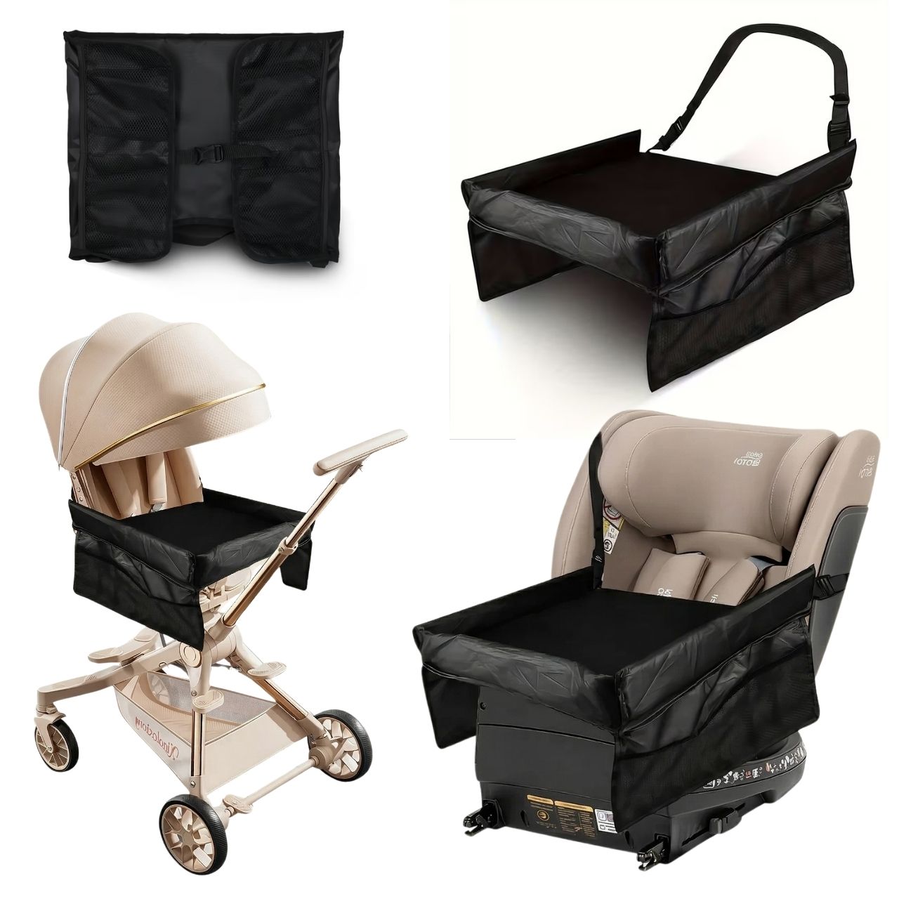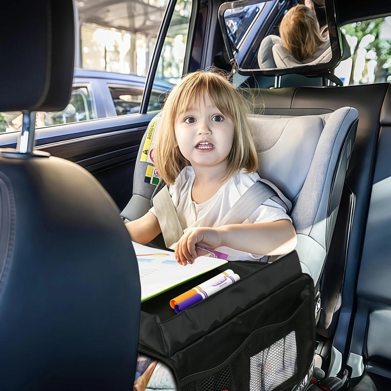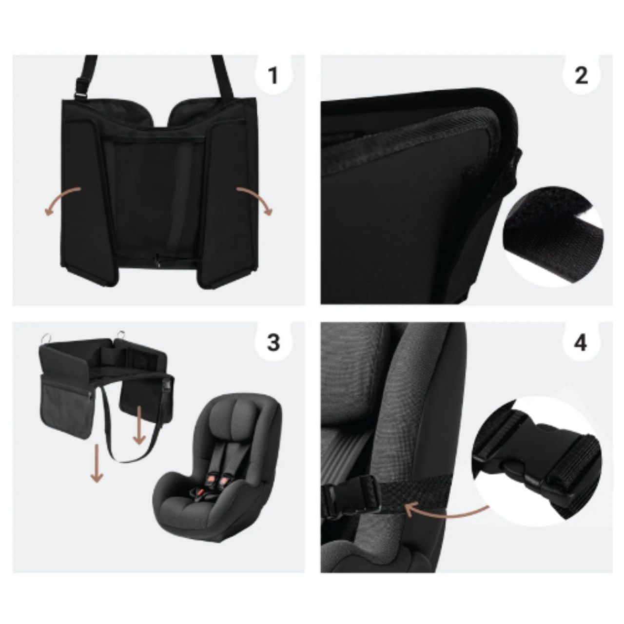 La scrivania da viaggio ha cinghie regolabili con fibbie. Semplicemente posiziona la cinghia intorno al sedile e fissala con la fibbia di sicurezza. Puoi anche regolare la lunghezza della cinghia.